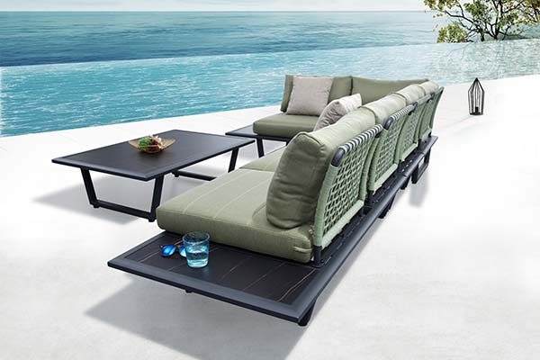 The Sophia 2.0 is designed with woven rope elements on the back, together with thick comfortable cushions, allowing the collection to be mixed in different environments. Think for example of a house, terrace, balcony or resort.